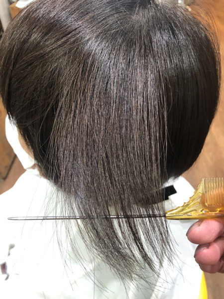 根元にちょっと白髪があり少しだけ色が抜けている状態です。