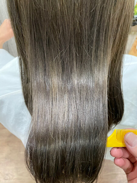 ハイトーンからのカラーの場合はやはりしっかりとケアをしないと髪の毛の引っ掛かりも出ますし、色もちも悪くなります。