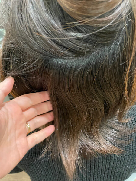 そして縮毛とLULUトリートメントをした髪の毛がこみら