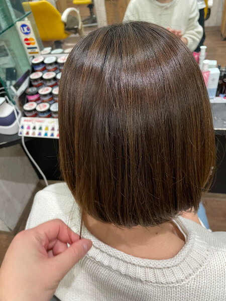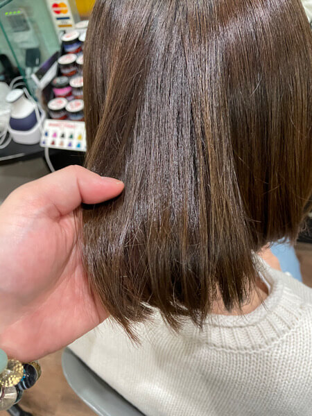 カラーのみでも良いのですがやはりトリートメントをすると手触りも良いですしカラーも綺麗に見えます。
