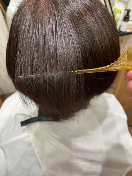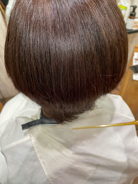継続しているので艶感はまだ残っているのですが、カラーの褪色と毎日ストレートアイロンを使うとの事で乾燥による広がりが気になります。