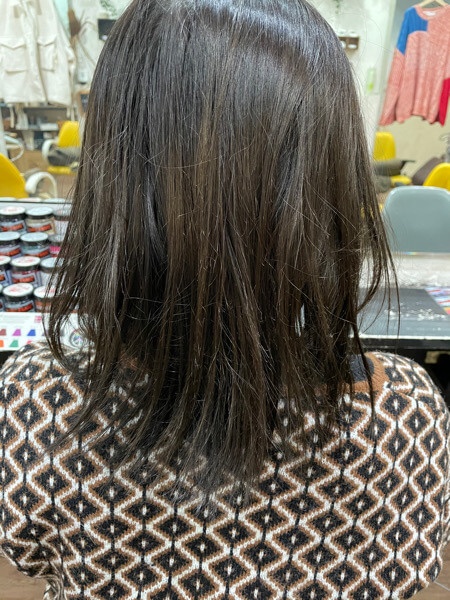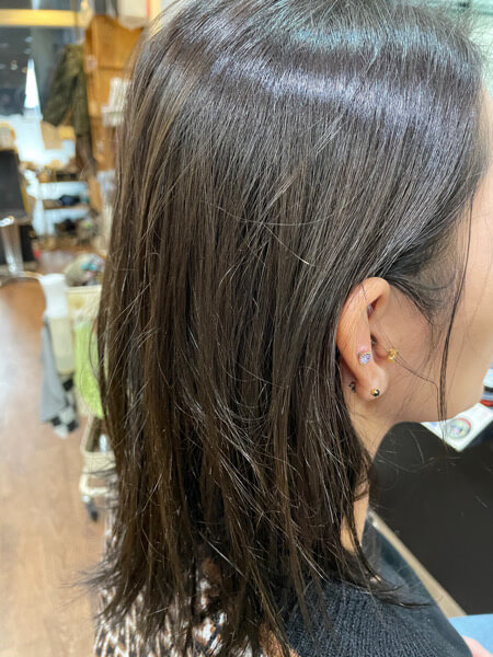 カラーは暗めにされているのでダメージはわかりにくいのですが元々髪質が柔らかく軟毛なのがお悩みとのことです。