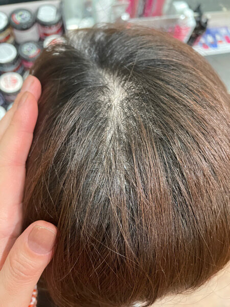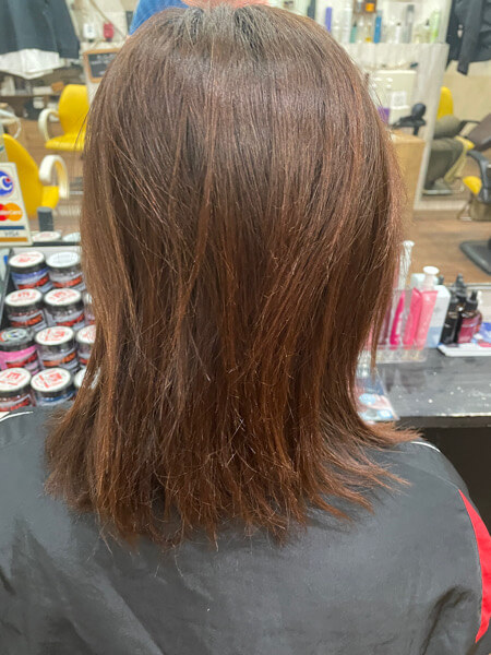 帰り際にも撮らせてもらいましたが白髪ボカシが入るとボリュームも出て見えて白髪が伸びた時も馴染みが良いかと思います。