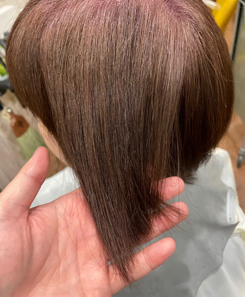そんな中先日エイジング毛の方の縮毛矯正とジュエリーシステムのLULUトリートメントでケアさせてもらいました。