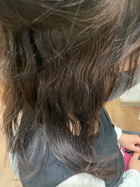 かつ全体的にもパサツキ毛先も引っかかりがありまとまりがなくなってきています。