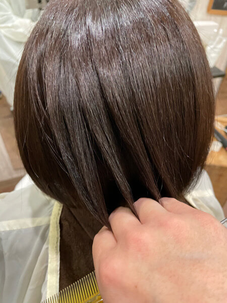 今回はカラーをして艶のある髪の毛にしたいと言うオーダーです。