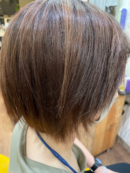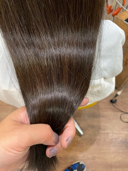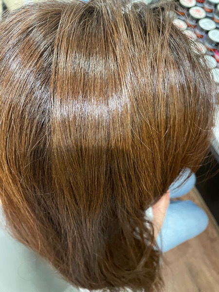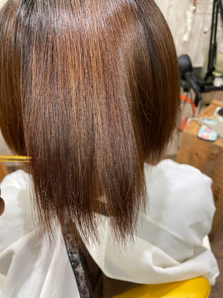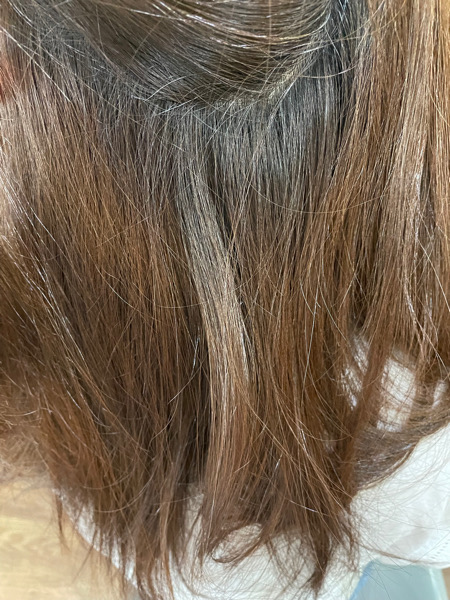 やはり紫外線のダメージで広がり、パサツキが少しあるのでベホマトリートメントをさせてもらいカラーもしました。