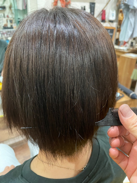 全体のカラーはアッシュグレージュにし艶々になりました。