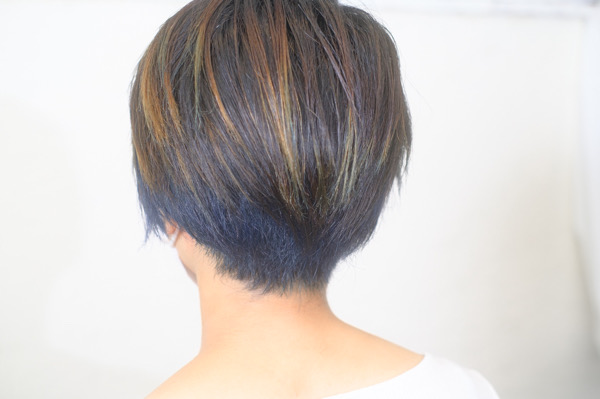 上の伸びていたブリーチはそのままにしてますが、襟足などは濃いめの青になりました。