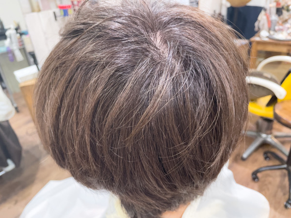 髪の毛に艶が出たのもありますが、白髪染めには見えないカラーになりました。