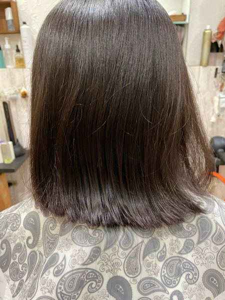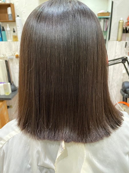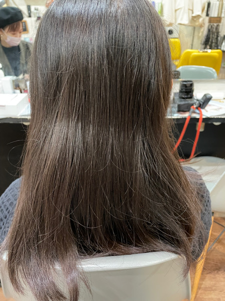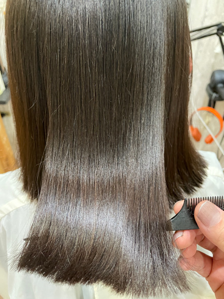 乾かしただけで収まるようにしたいので今回はベホマ縮毛矯正でサラサラの艶々にして収まりも良くします。