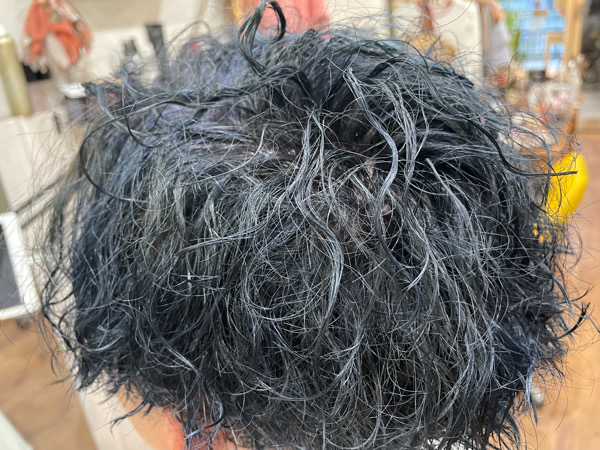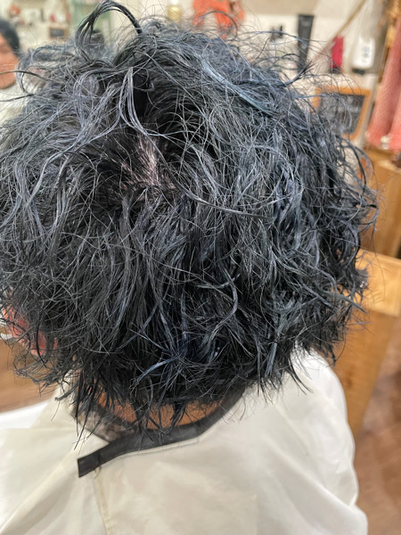 褪色して色が抜けていたので今回はここにツイストスパイラルパーマと濃いめのグレー系のカラーにしていきます。