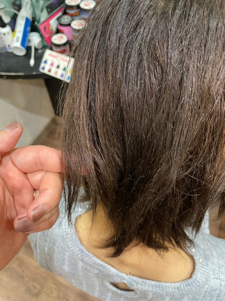 今回のように縮毛矯正だったり、アイロン等の熱ダメージはケアをしておかないと日に日に酷くなります。