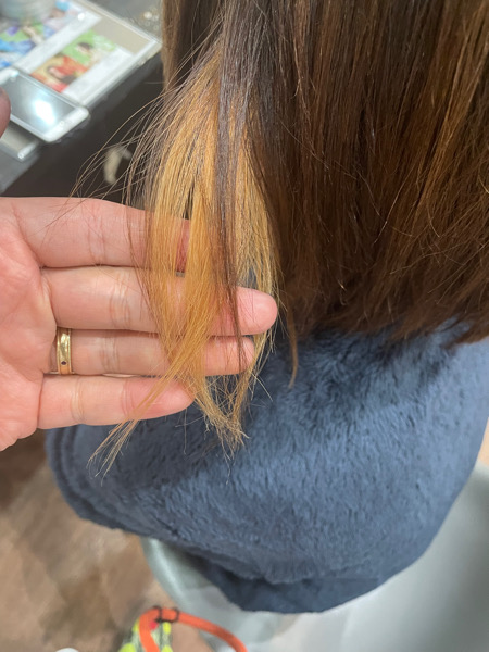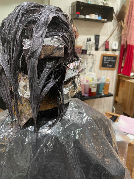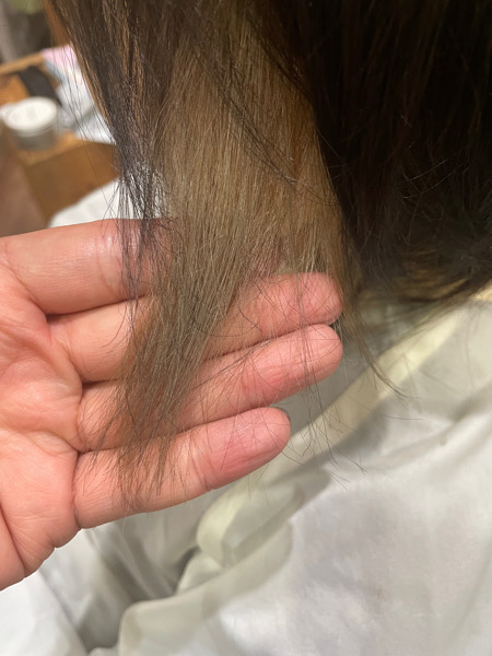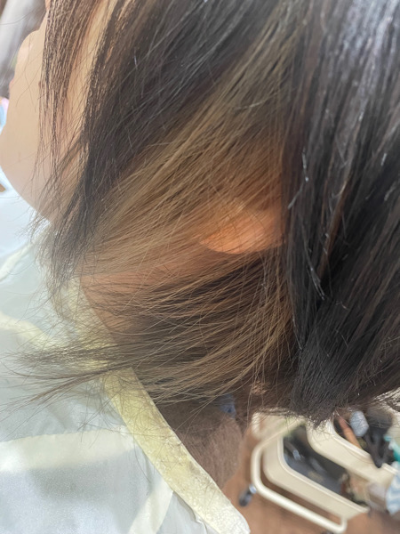 インナーカラーも入っているのですが、ここは残しつつ、少しハイライトも足しておきたいとのことなので白髪ボカシよのハイライトは入れます。