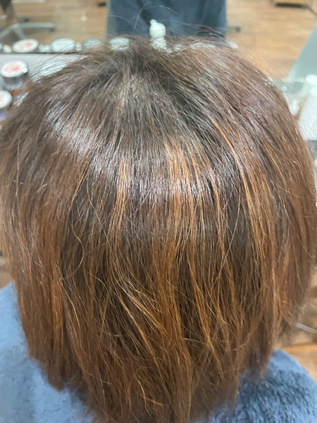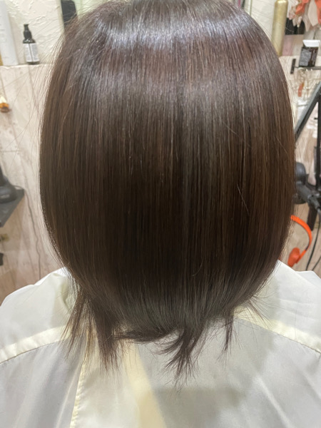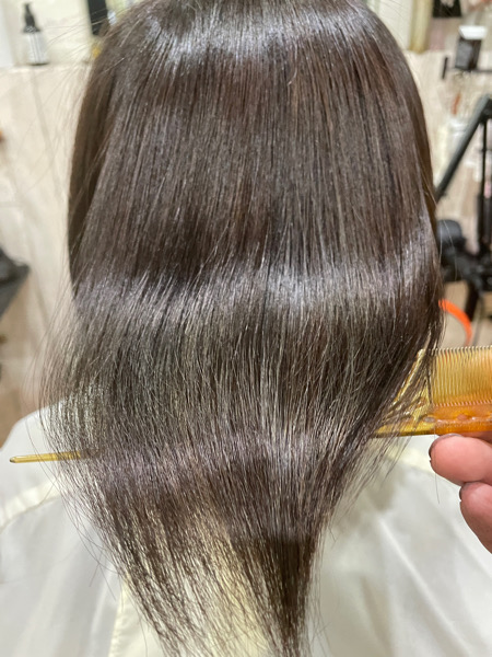 色味はアッシュ系を入れてかなり落ち着いた感じになりましたが髪の毛の艶がかなり出たのがわかります。