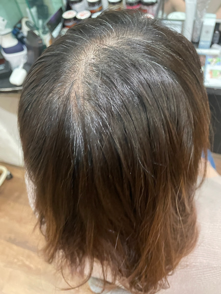 ハイライトを入れたり、グラデーションにしたりするのですが、普通に染めるより白髪が目立ちにくくなり一度すると次回はブリーチが必要でない場合も多く、スタイルの持ちもよくなります。