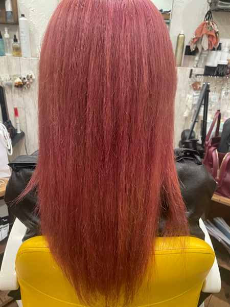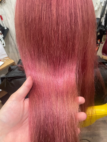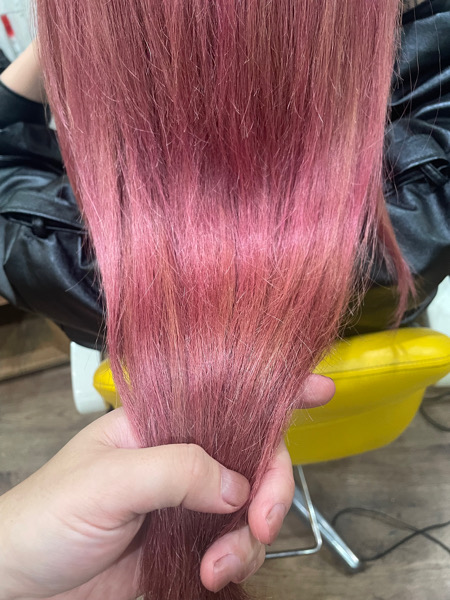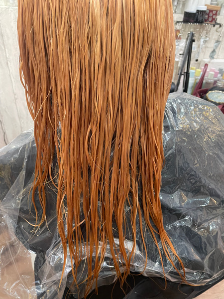 ブリーチをしているので色は入りますが、取れやすいのでここでもトリートメントをします。