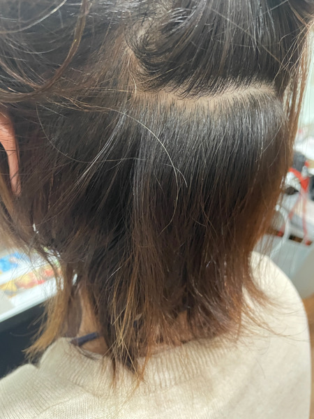 今は伸ばしている最中なので癖の毛流れが気になり、セットがしにくいと言う事なので今回は縮毛矯正。
