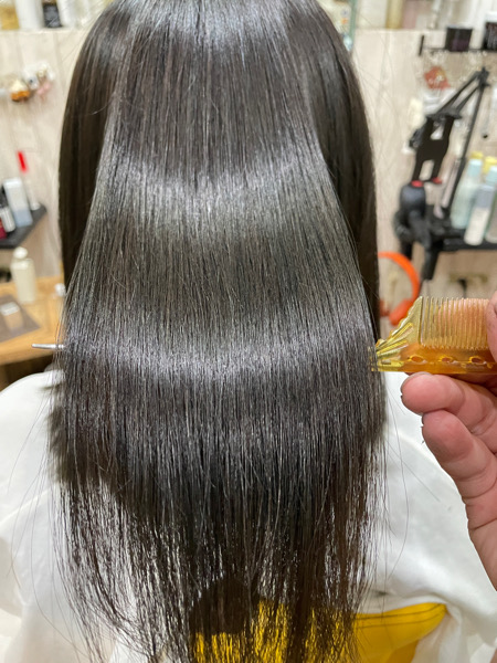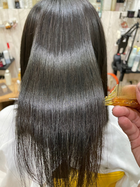 さてそんなカラーとトリートメントの施術結果ですが髪の毛はサラサラです。