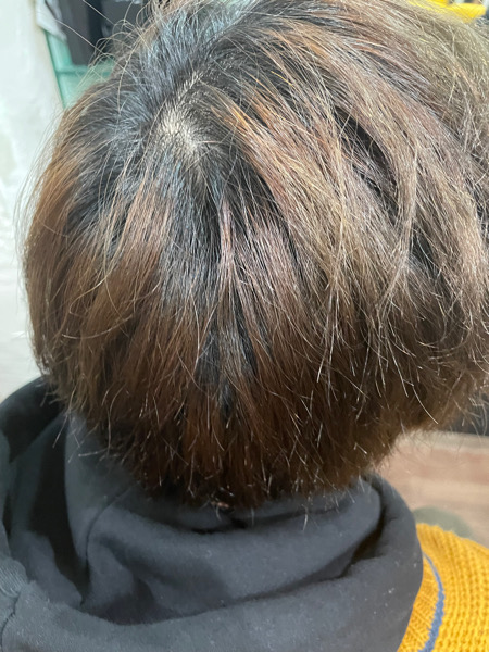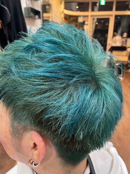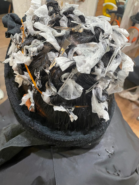 こちらのお客様は髪の毛を少し短くし、そしてブリーチをします。