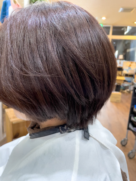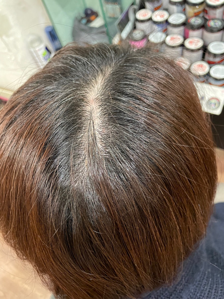 比較的明るい色をチョイスするので白髪をボカすようなイメージになりますが、明るいカラーはパサついても見えるのでそこにジュエリーシステムトリートメントをしたのがこちら