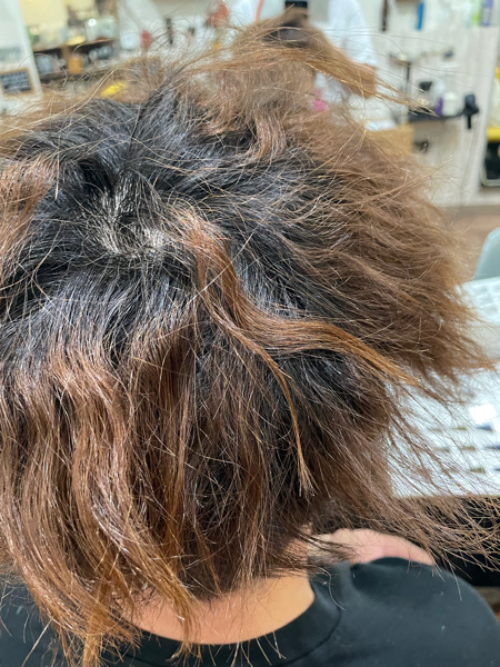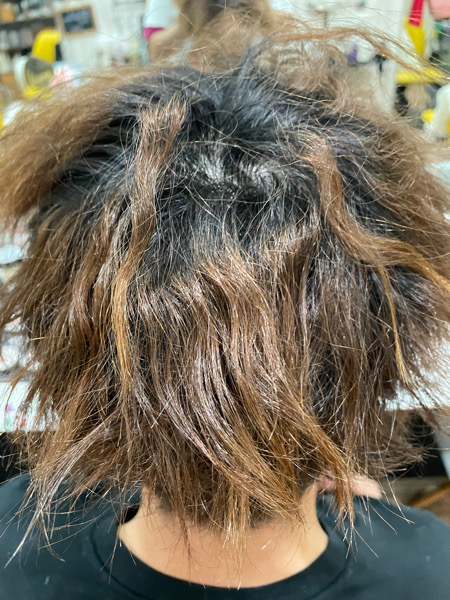 そこで今回は根本はブリーチを使わないで一度できるだけ明るくします。