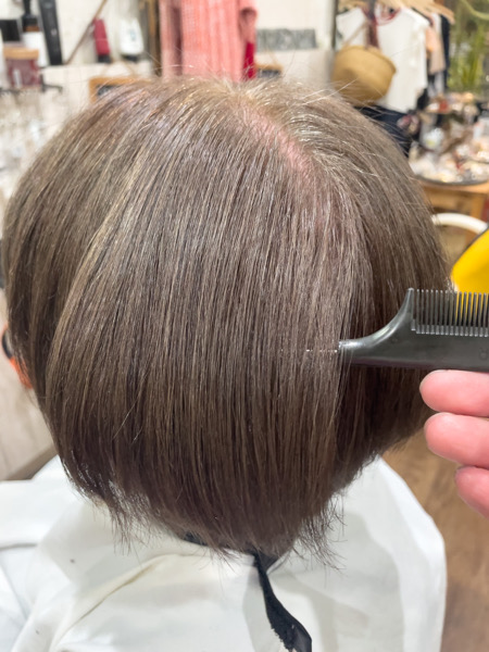 パサついてしまうとハイトーンのカラーはエイジング毛では綺麗に見えにくくなります。