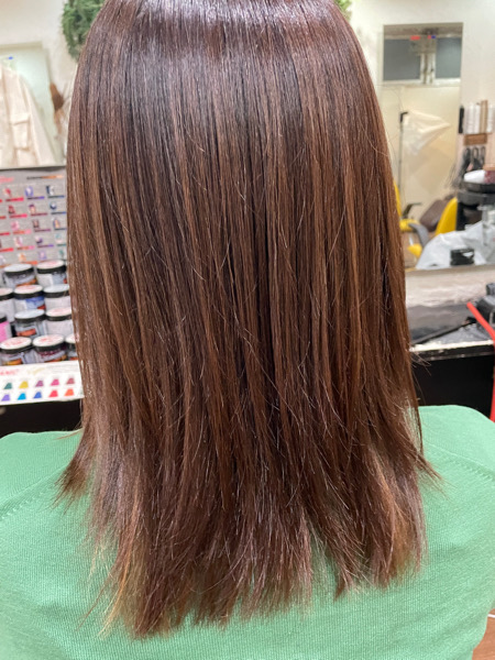 カラーが少し褪色したので、季節も春になるのでカラーチェンジをし、冬のダメージを艶トリートメントでケアします。
