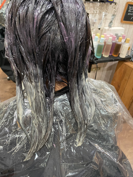 今回は根本から中間はラベンダーで染めて毛先だけマット系のカラーをいれます。
