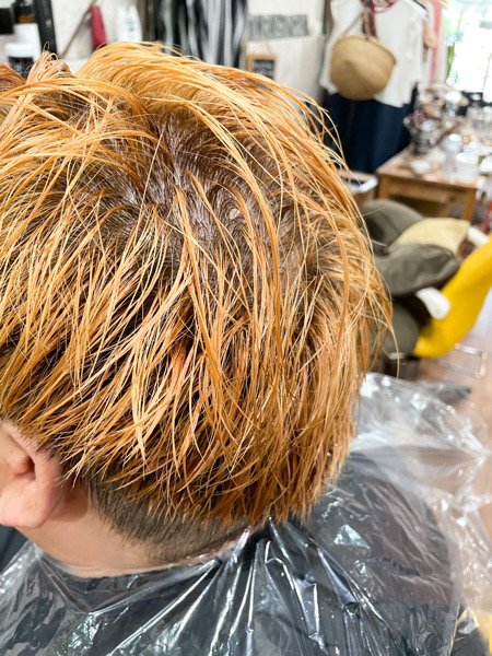 既に1度ブリーチさせてもらい色を上からかぶせてカラーシャンプーを家で使用してもらっています。