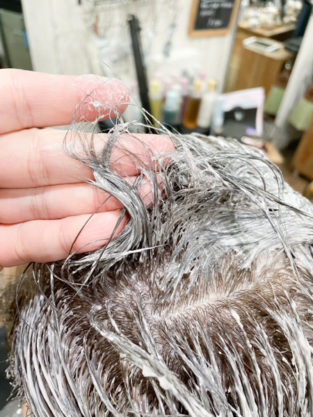 今回はより透明感のある色にしていくために再びブリーチをします。