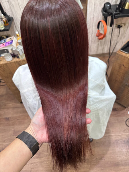 赤系は色の濃さでブリーチなしでも入れることは可能ですのでぜひお試しください。
