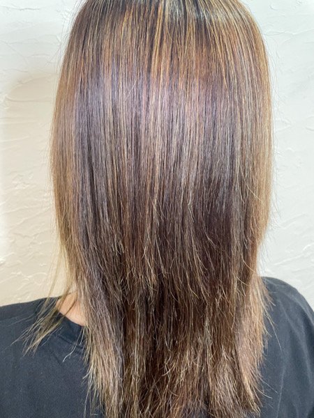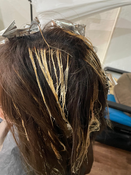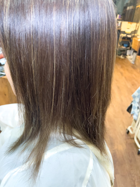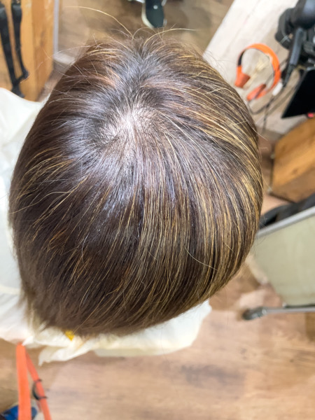 ただ暗くすると頻繁にカラーしないといけないとダメなので今回は細いハイライトを複数入れて白髪をぼかすことにしました。