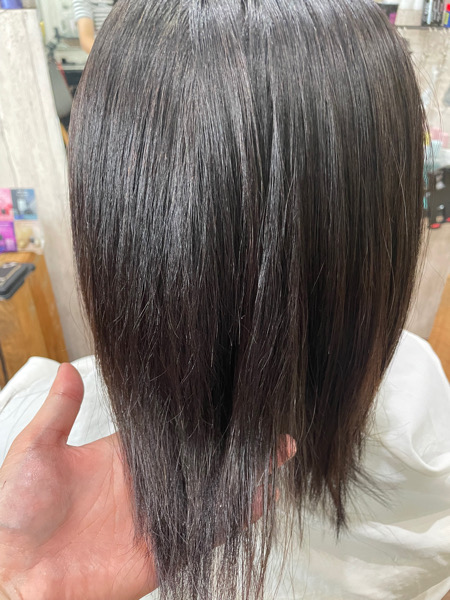 こちらのお客様は普段サロンでトリートメントはしないのでさが、今回はいつも使っているシャンプーとトリートメントが切れていたらしくパサツキがあったのでジュエリーシステムトリートメントをさせてもらっています。