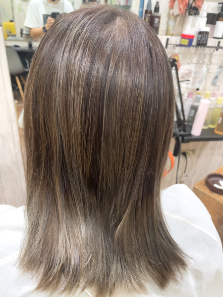 ここに全体にハイライト、毛先はグラデーションを入れていきます。