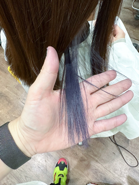 インナーカラーに薄い紫を入れたいと言うオーダーです。