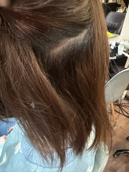 普通は縮毛矯正とカラーだとダメージが出るのですがそこにトリートメントを縮毛矯正、カラー両方に入れているのでこれだけ綺麗に仕上がります。