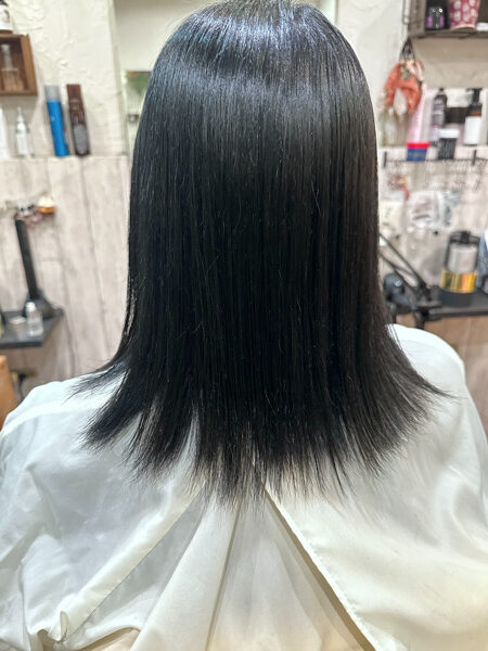 ブリーチしてたのがわからないぐらい綺麗な艶のある黒髪になりました。