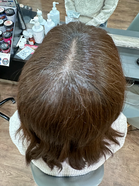白髪染めをする世代の髪の毛の縮毛矯正はエイジング毛でダメージを負いやすい特徴もあるので今回もしっかりとベホマトリートメントをしながら施術をすることにします。