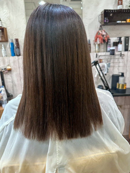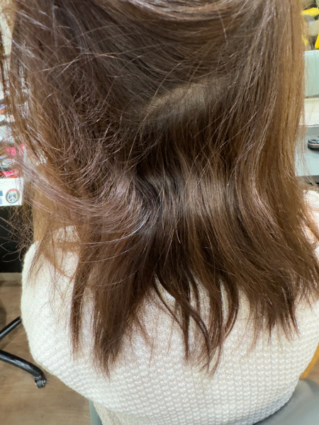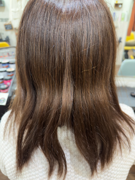 エイジング毛は癖毛の方が多いので縮毛矯正とカラーをして扱いやすい髪の毛にしてみてください。
