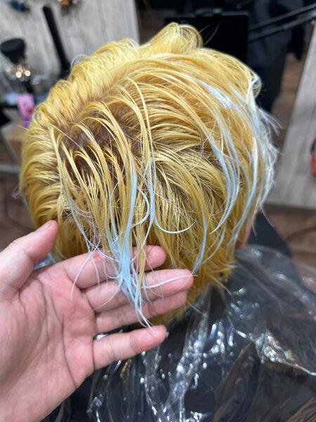 セルフブリーチの場合はダメージで既に傷んでおり、場合にもよっては髪の毛が切れそうな方もおられます。