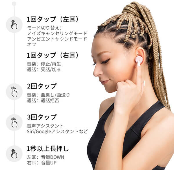 また、ノイズキャンセリング機能、そしてアクティブノイズキャンセリングも対応しているのでイヤホンを外す事なく人とも会話もできます。