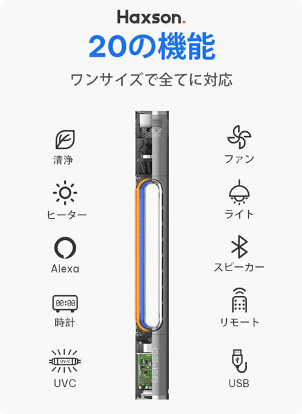 これだけで20の機能がついててヒータだったり空気清浄機だったりアレクサだったりスピーカーなど色々と機能があります。