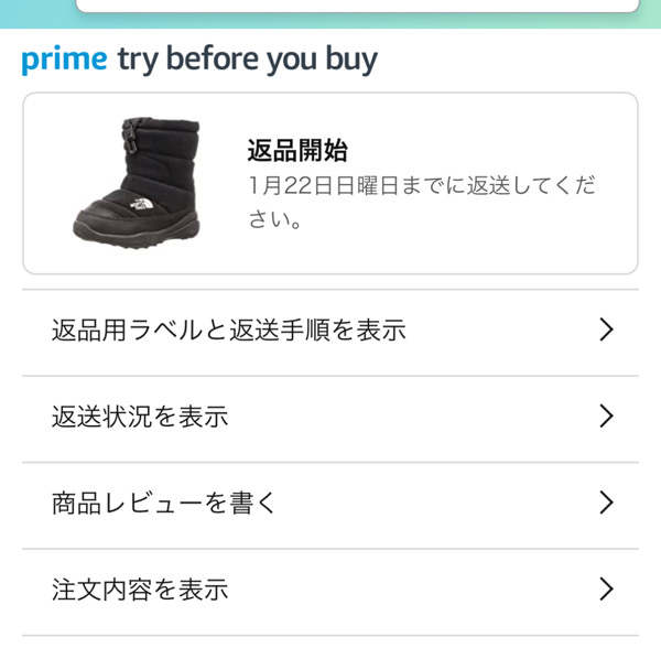 先日初めてAmazonのPrime try before you buyのサービスを使ってみました。