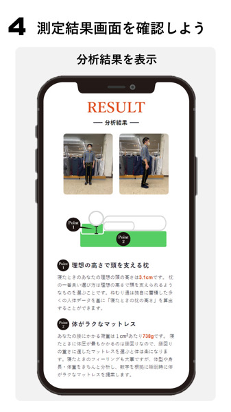 写真を撮り送ると自分に合った枕とかベットを教えてくれて購入が可能です。