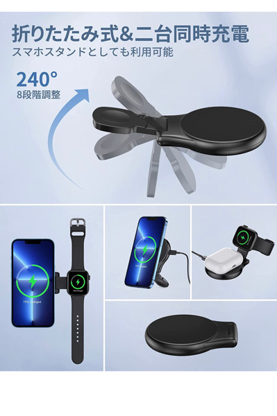 スマホ、Apple Watch、ワイヤレス充電対応のイヤフォンも充電できてしまいます。