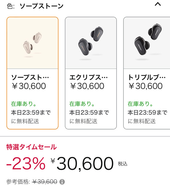 ののBOSEのイヤフォンが現在Amazonのタイムセールで9000円ぐらい安くなっています。