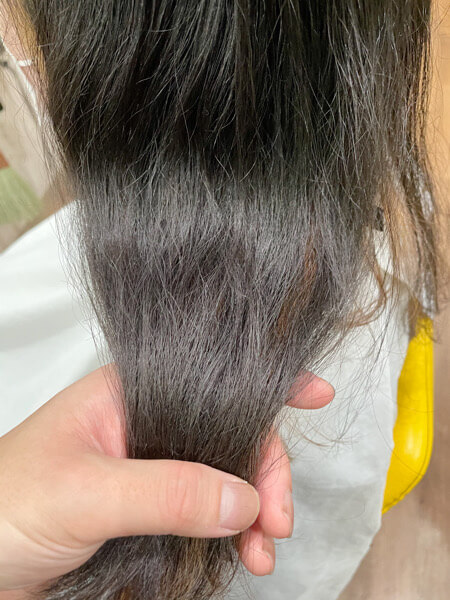 お客様は癖毛で広がやすく乾燥している事がお悩みでした。
