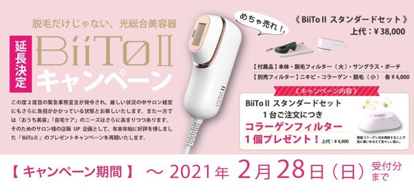 現在キャンペーン中の家庭用脱毛機BiiTo 2¥38000(税抜)