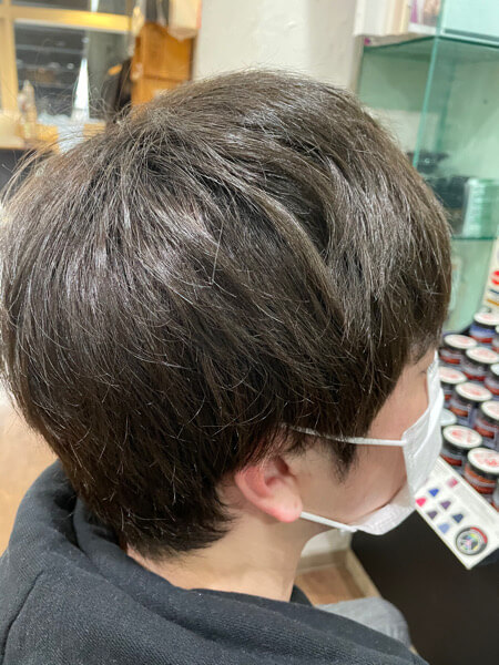 かなり伸びていたので中は刈り上げて、全体は明るめのアッシュにします。
